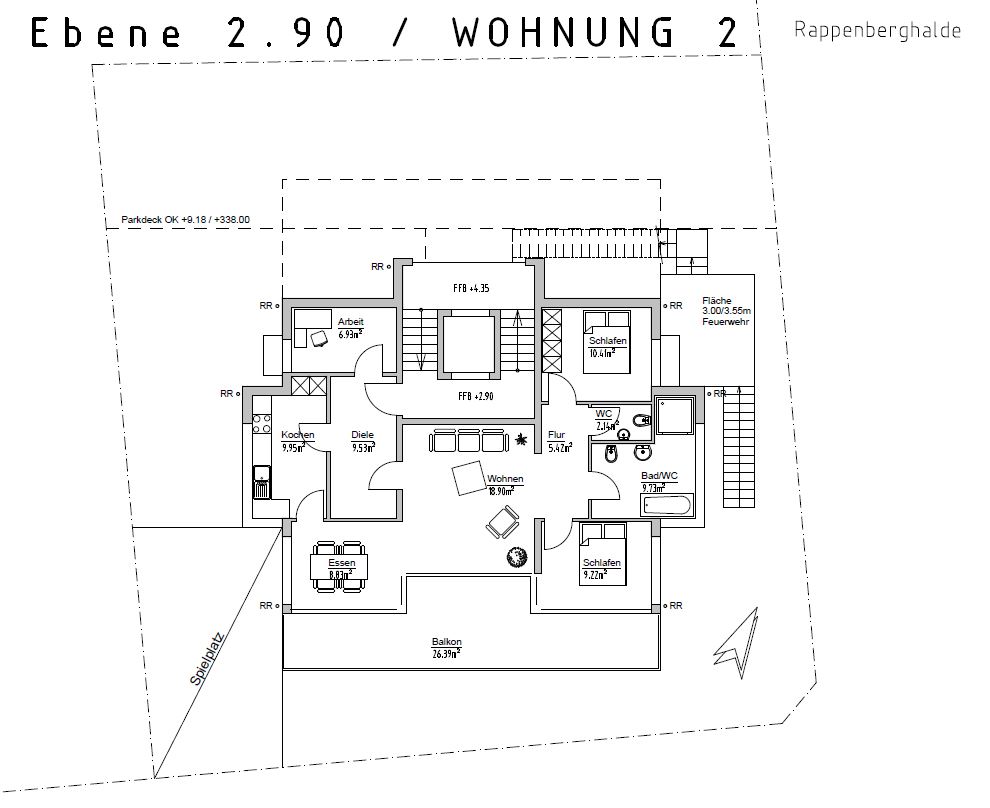 - Wohnflächen von 91-102 m²: 4-Zimmer-Wohnungen mit optimaler Raumaufteilung.